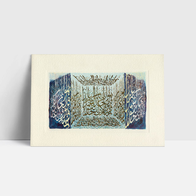There are three types of card opening – cards with the spine on the right (mainly for Arabic text), cards that open on their upper edge, and cards that open from the left side (generally for English texts). See separate card icon above, which illustrates this card’s opening.